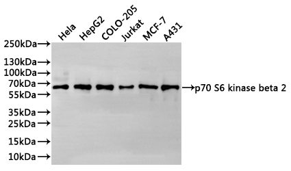 All lanes: p70 S6 kinase beta 2 antibody at 1:1000