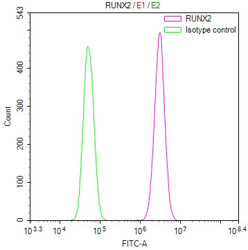 Transcription factor involved in osteoblastic differentiation and skeletal morphogenesis. Essential for the maturation of osteoblasts and both intramembranous and endochondral ossification. CBF binds to the core site, 5'-PYGPYGGT-3', of a number of enhancers and promoters, including murine leukemia virus, polyomavirus enhancer, T-cell receptor enhancers, osteocalcin, osteopontin, bone sialoprotein, alpha 1(I) collagen, LCK, IL-3 and GM-CSF promoters. In osteoblasts, supports transcription activation: synergizes with SPEN/MINT to enhance FGFR2-mediated activation of the osteocalcin FGF-responsive element (OCFRE). Inhibits KAT6B-dependent transcriptional activation.