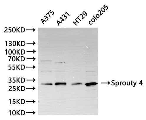 Protein sprouty homolog 4 antibody; Sprouty 4 antibody; Sprouty homolog 4 antibody; sprouty homolog 4 (Drosophila) antibody; SPRY 4 antibody; Spry-4 antibody; Spry4 antibody; SPY4_HUMAN antibody