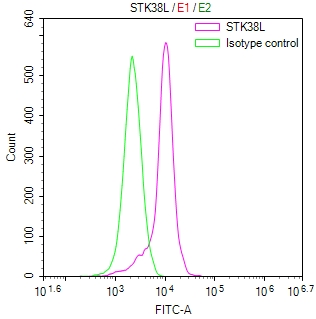 KIAA0965 antibody; NDR2 antibody; NDR2 protein kinase antibody; nuclear Dbf2 related 2 antibody; Nuclear Dbf2 related kinase 2 antibody; Nuclear Dbf2-related kinase 2 antibody; Serine/threonine protein kinase 38 like antibody; Serine/threonine-protein kinase 38-like antibody; ST38L_HUMAN antibody; Stk38l antibody