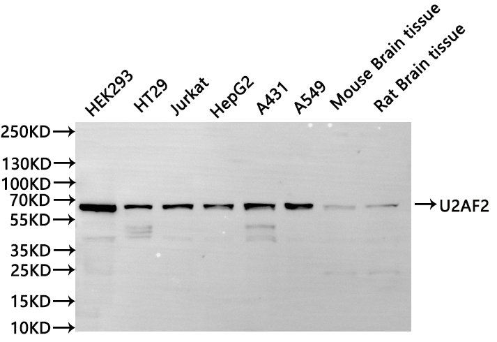 All lanes: U2AF2 antibody at 1:1000