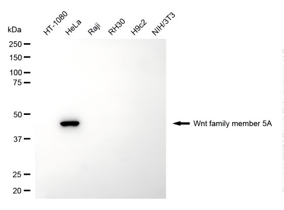 Ligand for members of the frizzled family of seven transmembrane receptors. Can activate or inhibit canonical Wnt signaling, depending on receptor context. In the presence of FZD4, activates beta-catenin signaling. In the presence of ROR2, inhibits the canonical Wnt pathway by promoting beta-catenin degradation through a GSK3-independent pathway which involves down-regulation of beta-catenin-induced reporter gene expression. Suppression of the canonical pathway allows chondrogenesis to occur and inhibits tumor formation. Stimulates cell migration. Decreases proliferation, migration, invasiveness and clonogenicity of carcinoma cells and may act as a tumor suppressor. Mediates motility of melanoma cells. Required during embryogenesis for extension of the primary anterior-posterior axis and for outgrowth of limbs and the genital tubercle. Inhibits type II collagen expression in chondrocytes.
