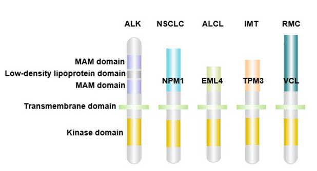 ALK has abnormal changes in a variety of tumors, including anaplastic large cell lymphoma (ALCL), rhabdomyosarcoma, inflammatory myofibroblastoma, neuroblastoma and non-small cell lung cancer (NSCLC). Gene fusion is the main form of ALK abnormality. In addition, increased gene amplification/copy number and point mutations in the kinase domain also enhanced the abnormal activity of ALK kinase. Up to now, 21 different genes have been found to translocate with ALK, and different ALK fusion proteins may cause the activation of different signaling pathways.